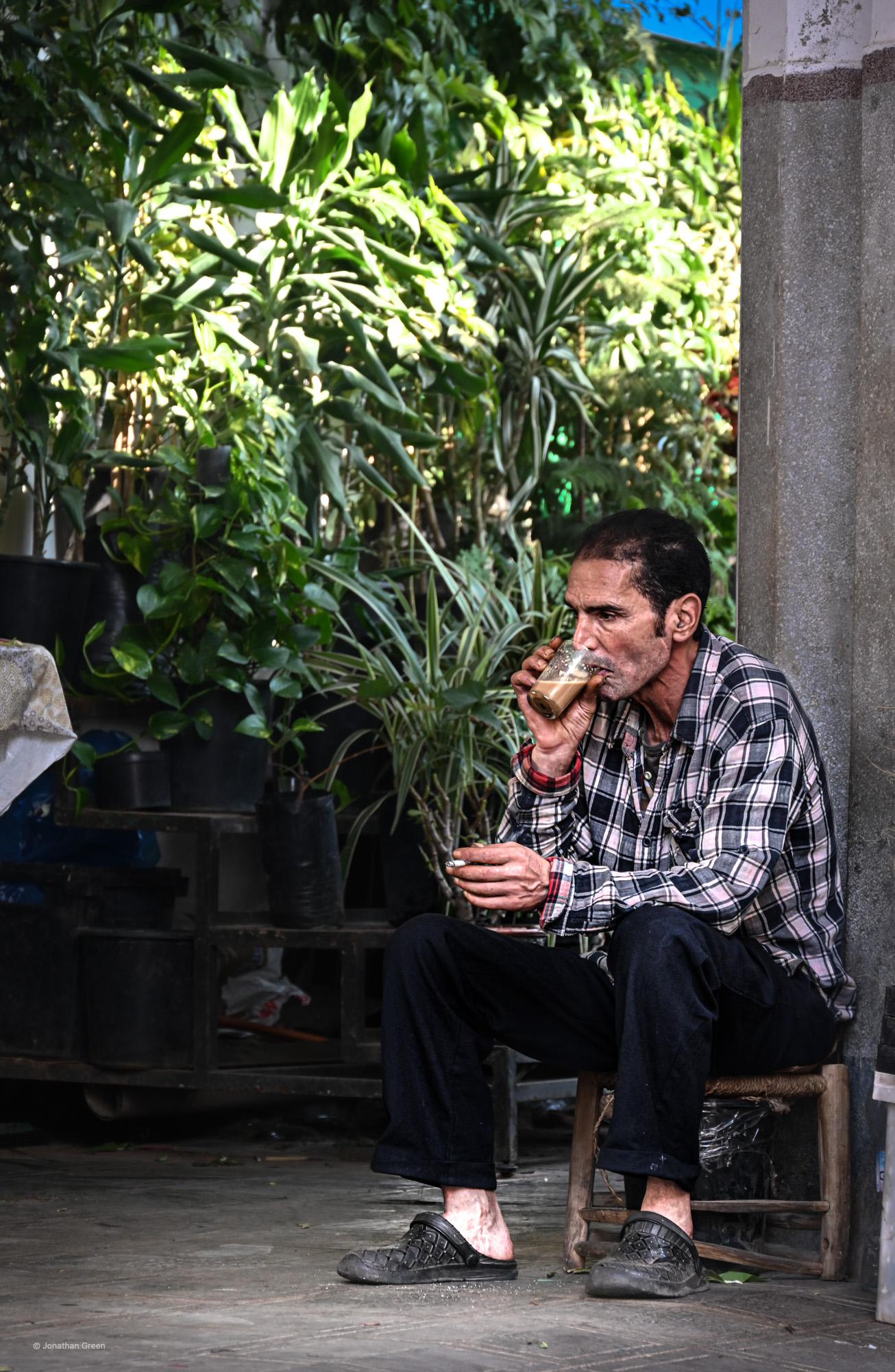 Coffee break at the plant stall