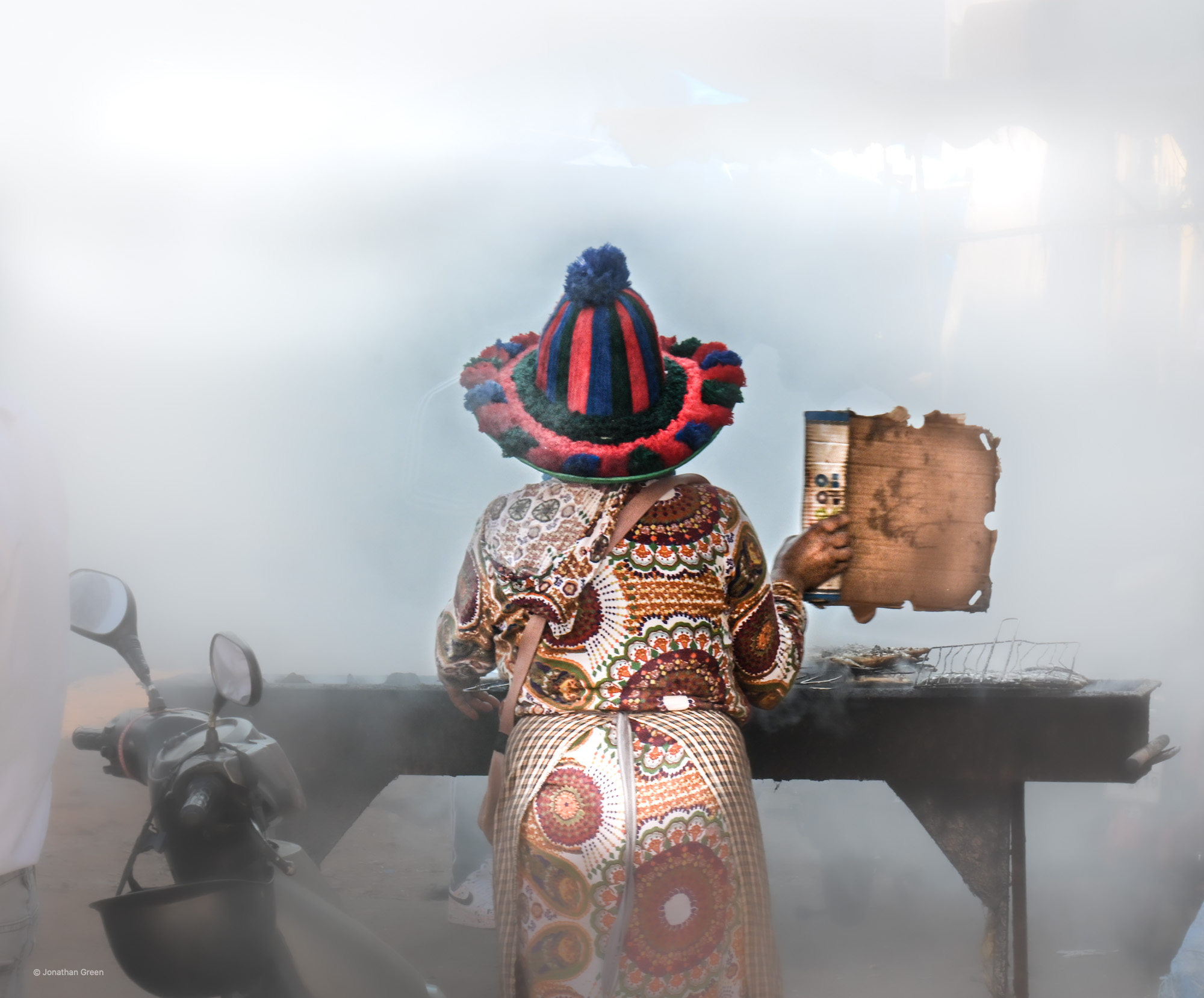 Woman smoking fish
